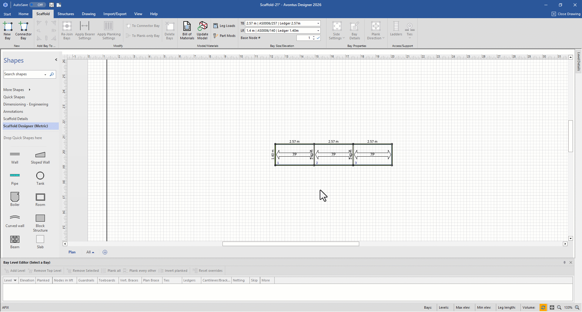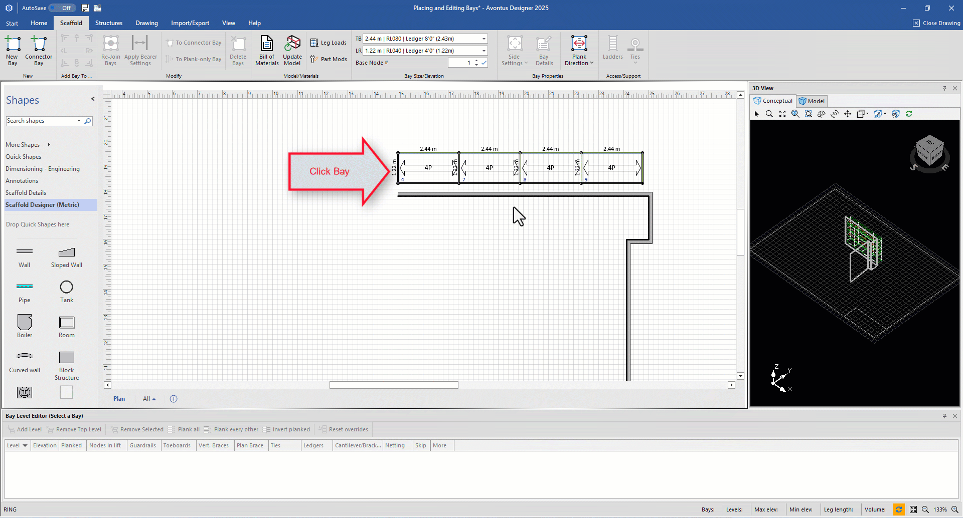 You can apply Bearer Settings to a bay with a simple click. These Bearer Settings are either specified in the Global Options or the Drawing Options.