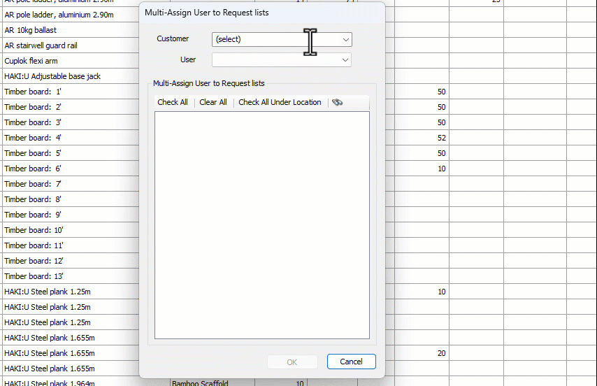 If your Quantify installation has Location-Based Security enabled, you can use Quantify's Multi-Assign feature to assign a Customer Contact/User to multiple Request Lists at once.