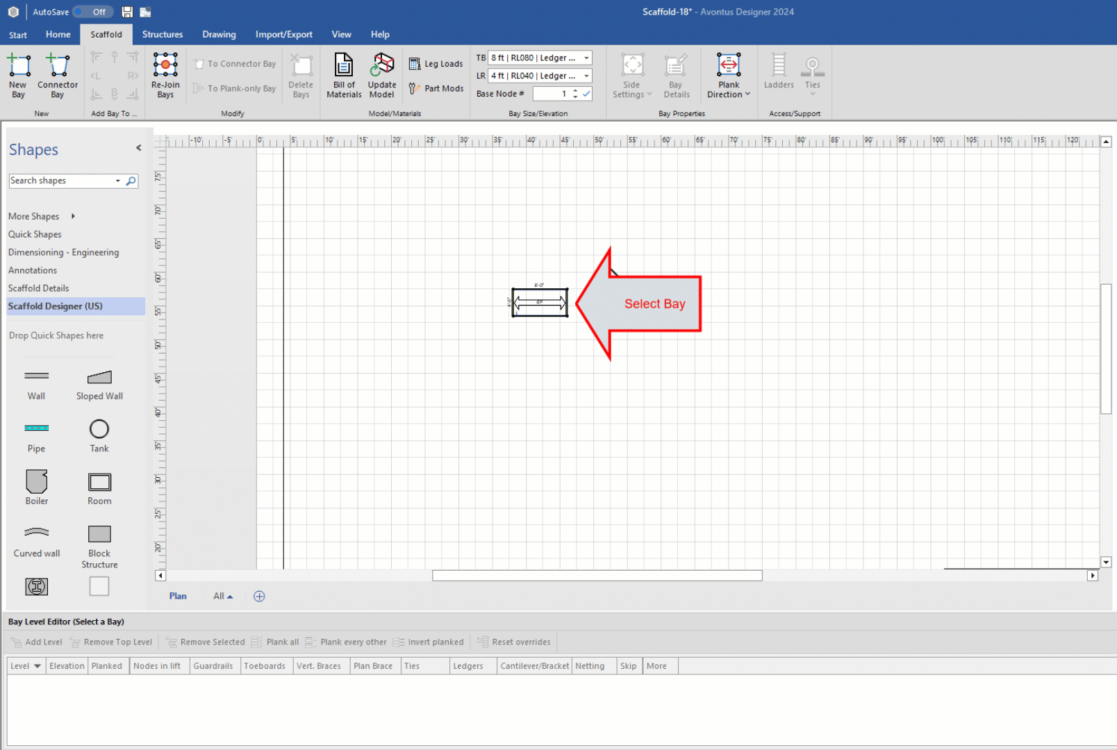 Click the new Bay (to select it), then click the Bay Details dropdown.