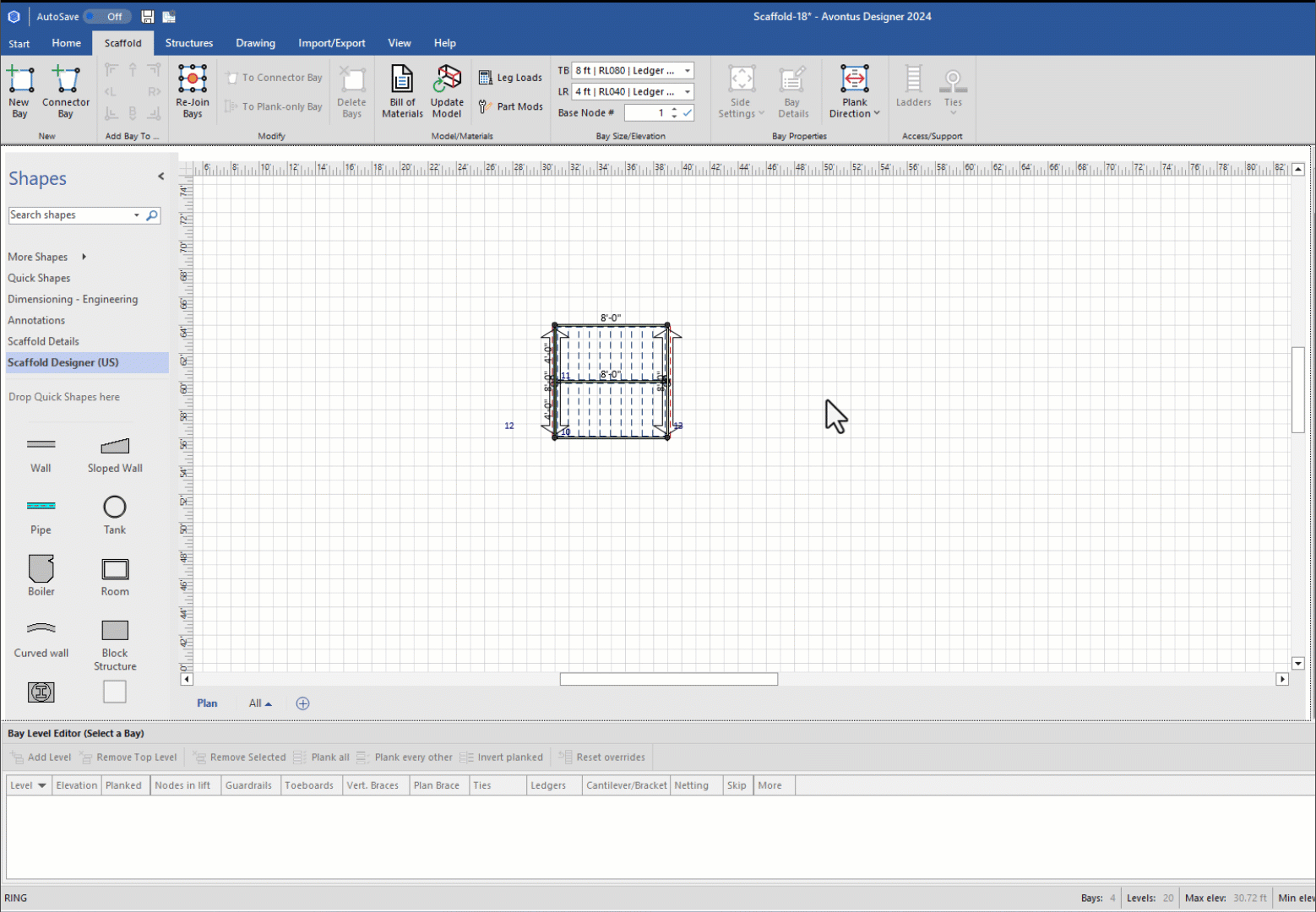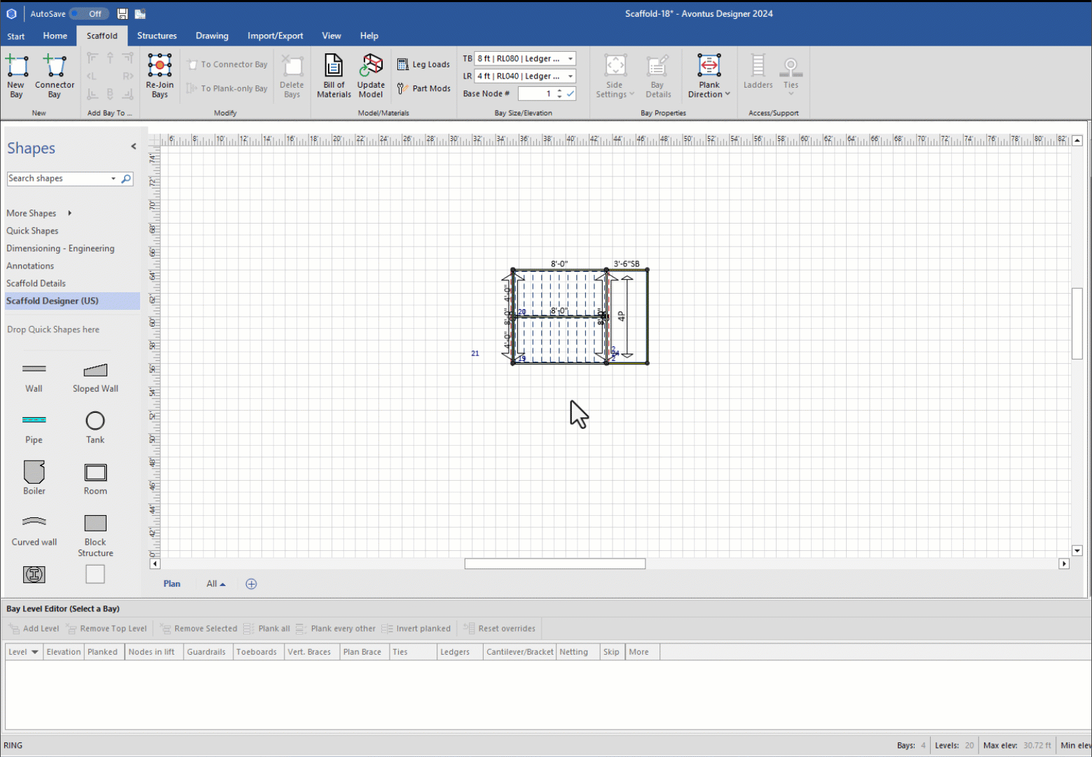 Select a bay and convert it to a connector bay by selecting To Connector Bay in the Scaffold tab