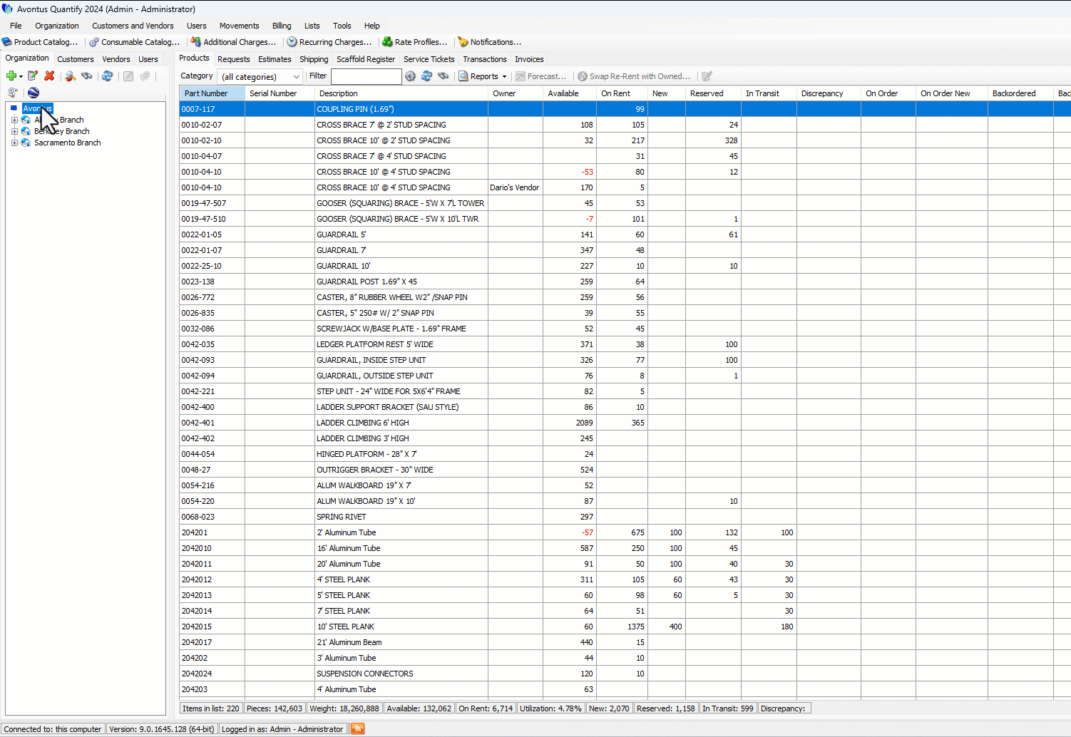 Quantify processes the import and adds the new Job Site(s) to the tree beneath the selected location.