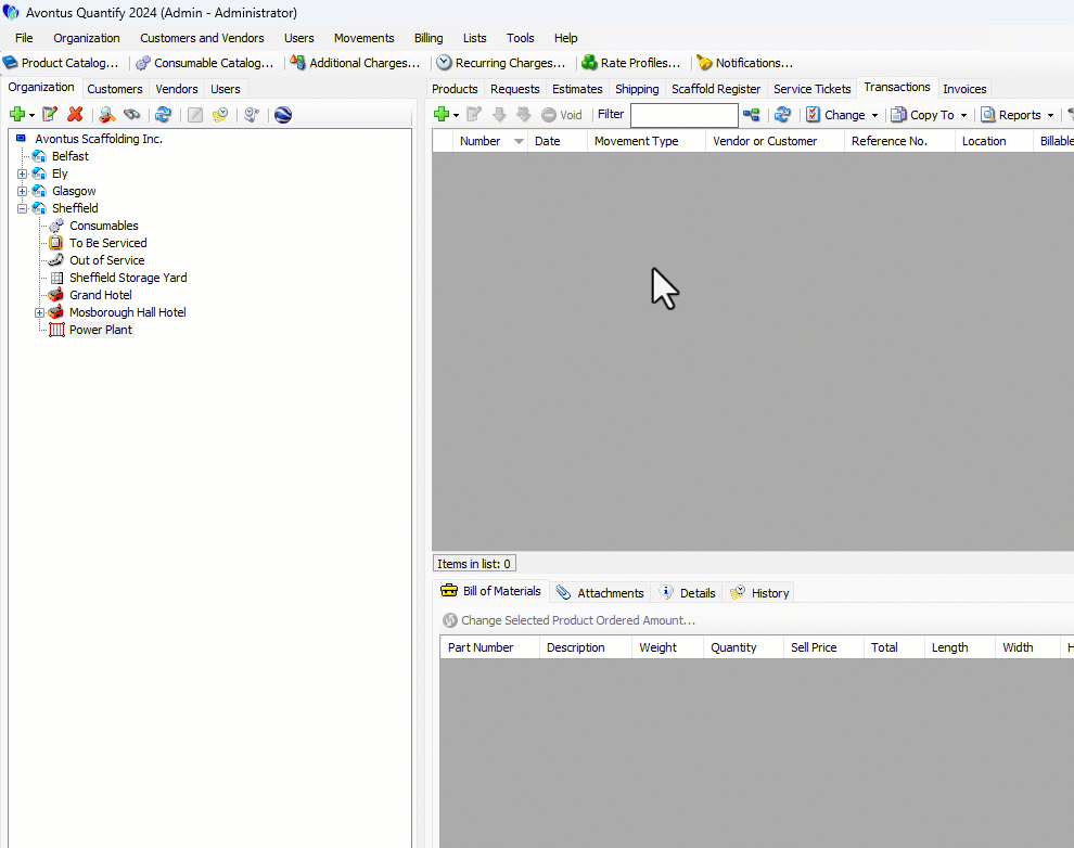 Locate and right-click the appropriate Scaffold Tag Job Site in the Organization Tree and select Convert Scaffold Tag Job Site to Billable from the menu that appears.