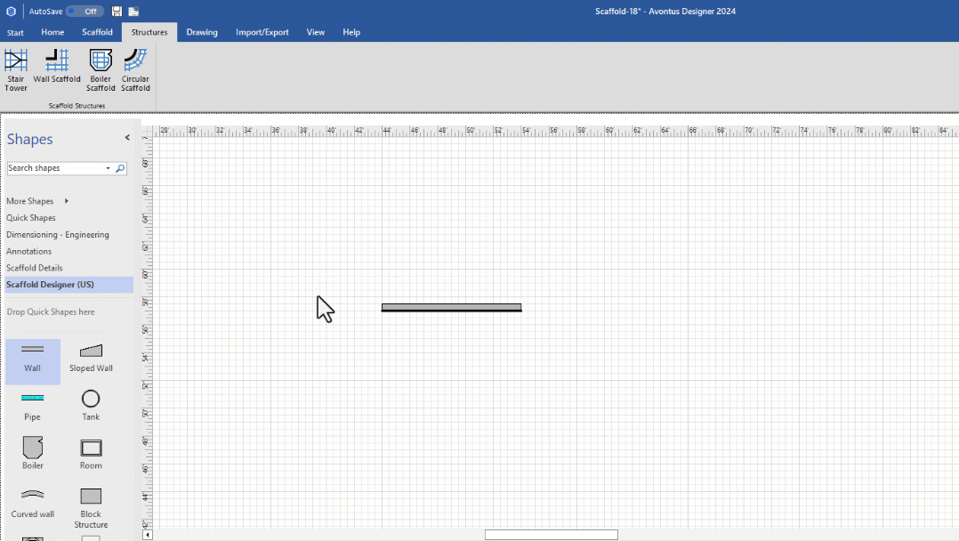 The location of a Wall's reference line determines the default side along which Avontus Designer will create bays when you click Wall Scaffold in the Structures tab.