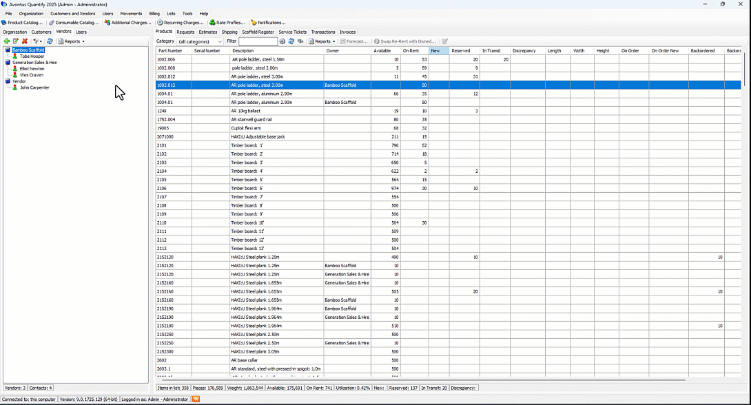 Vendors are companies/suppliers from whom you purchase or re-rent equipment. You create and manage Vendors and Vendor Contacts through the Vendors tab.