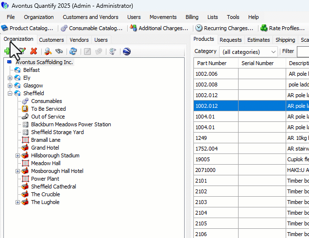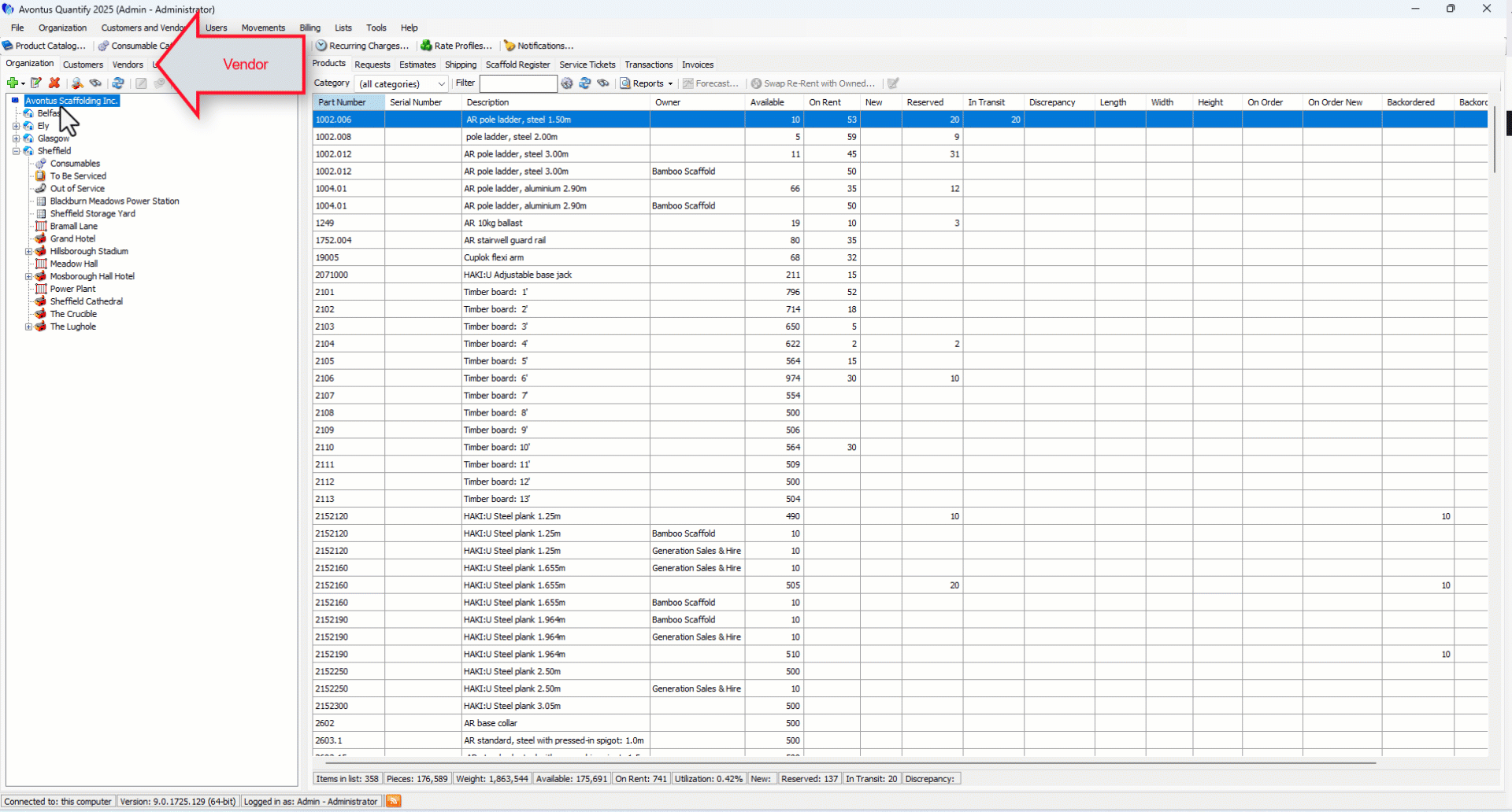 The Owned Products tab in the Vendor record lists the products currently re-rented from this Vendor, along with the current location of all the products.